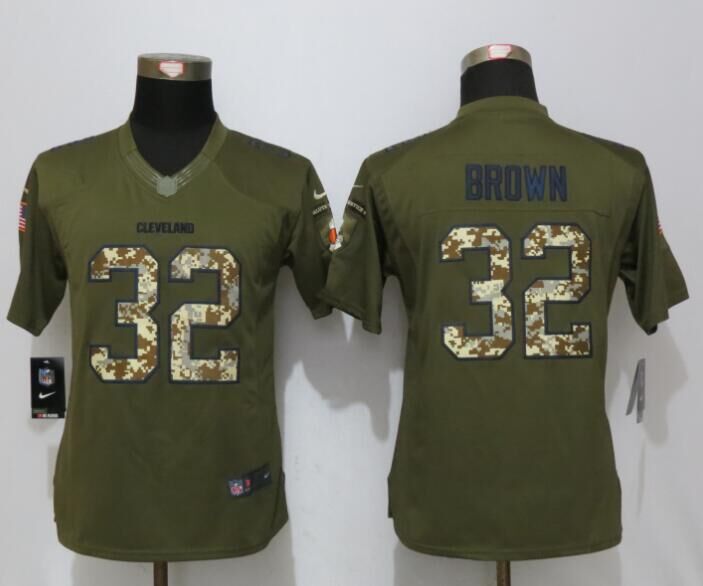 Women Cleveland Browns 32 Jim Brown Green Salute To Service Limited Jersey