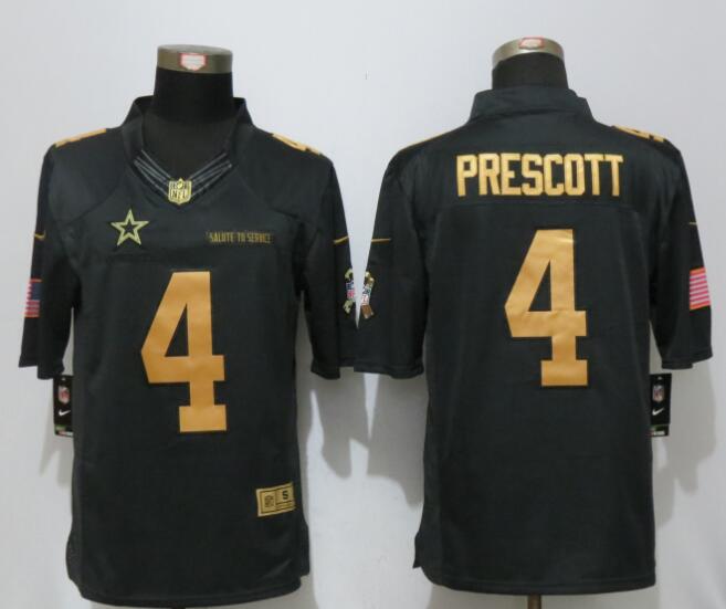 Dallas Cowboys 4 Dak Prescott Gold Anthracite Salute To Service Limited Jersey