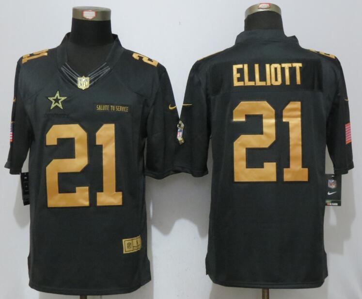 Dallas Cowboys 21 Ezekiel Elliott Gold Anthracite Salute To Service Limited Jersey