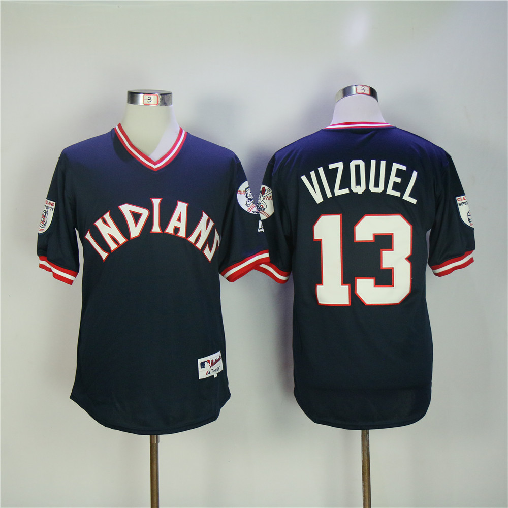 Cleveland indians 13 Omar Vizquel Baseball Jersey Navy Blue Retro