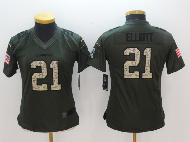 Women Dallas Cowboys 21 Ezekiel Elliott Green Salute To Service Limited Jersey