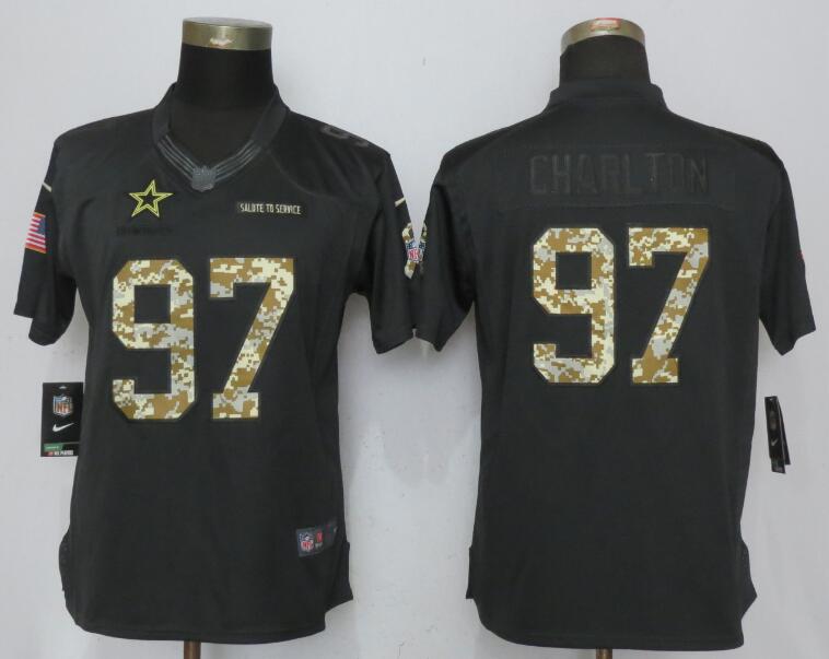 Women Dallas Cowboys 97 Taco Charlton Anthracite Salute To Service Elite Jersey