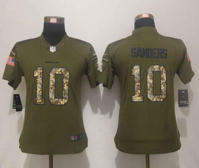 Women Denver Broncos 10 Emmanuel Sanders Green Salute To Service Limited Jersey