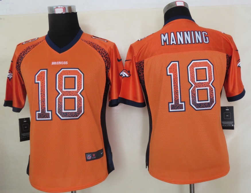 Women Denver Broncos 18 Peyton Manning Drift Fashion Orange Elite Jersey