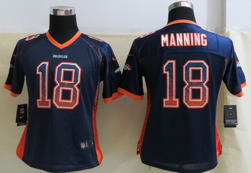 Women Denver Broncos 18 Peyton Manning Drift Fashion Blue Elite Jersey