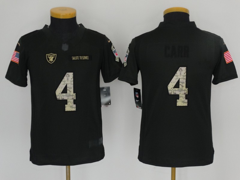 Youth Oakland Raiders 4 Derek Carr Anthracite Salute To Service Limited Jersey