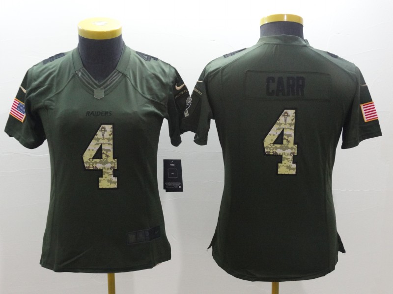 Women Oakland Raiders 4 Derek Carr Green Salute To Service Limited Jersey