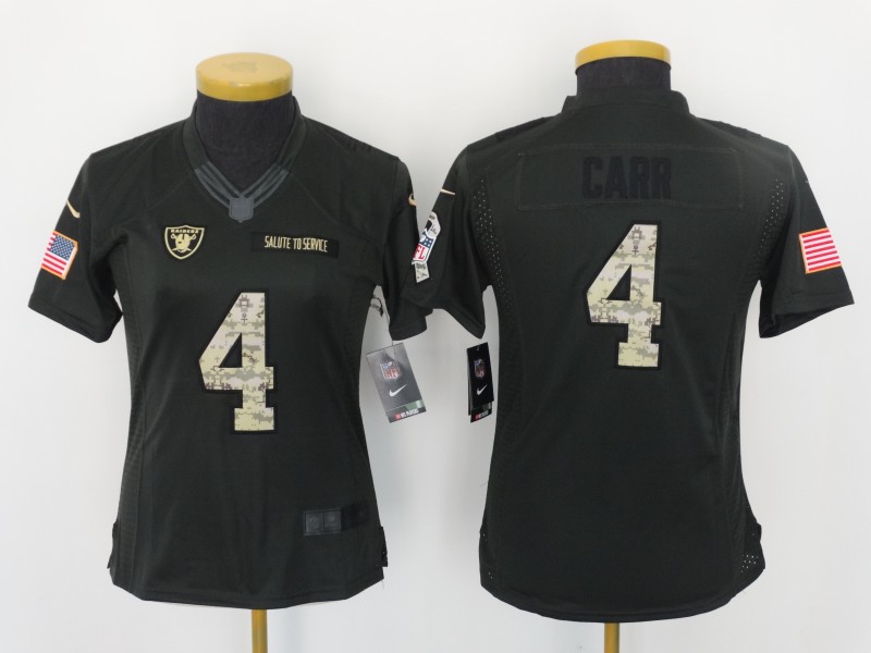 Women Oakland Raiders 4 Derek Carr Anthracite Salute To Service Limited Jersey