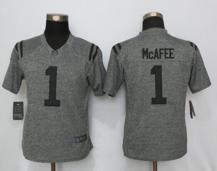 Women Indianapolis Colts 1 Pat McAfee Stitched Gridiron Gray Limited Jersey