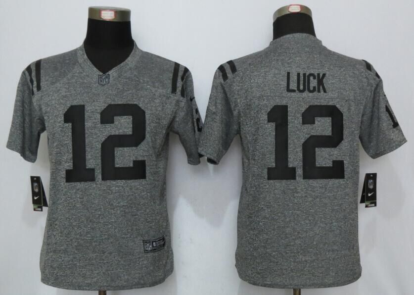 Women Indianapolis Colts 12 Andrew Luck Stitched Gridiron Gray Limited Jersey