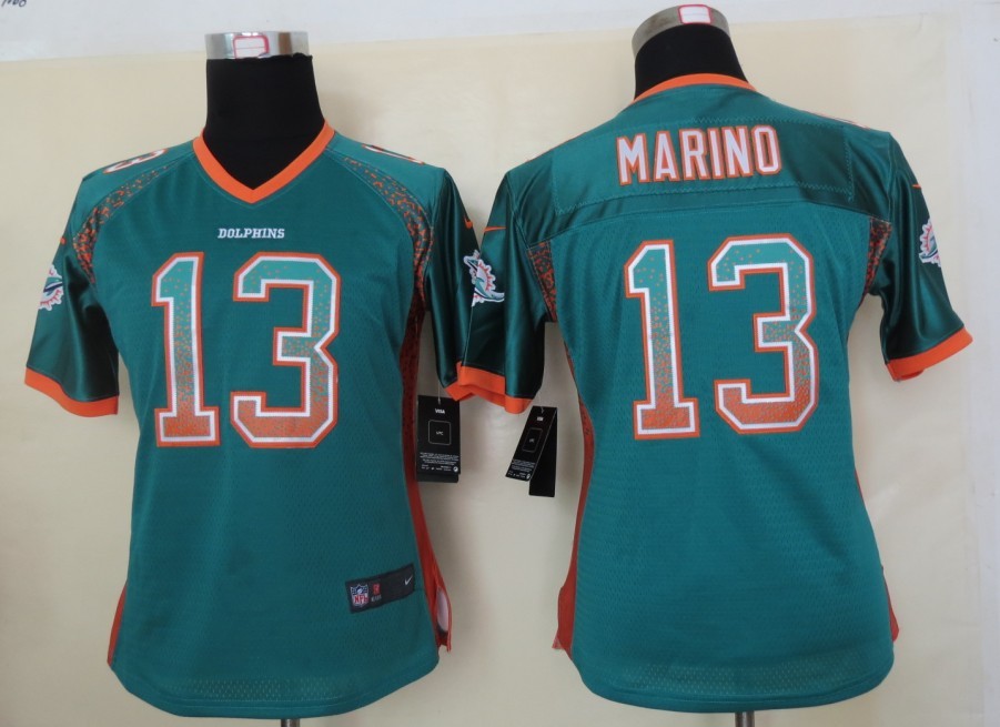 Women Miami Dolphins 13 Dan Marino Drift Fashion Green Elite Jersey