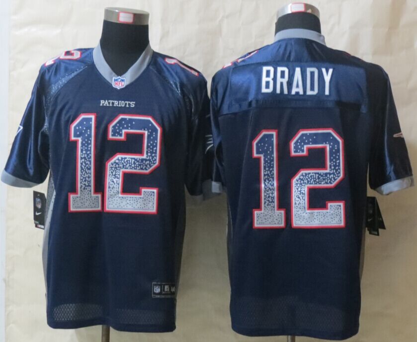 New England Patriots 12 Tom Brady Drift Fashion Blue Elite Jersey
