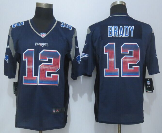 New England Patriots 12 Tom Brady Navy Blue Strobe Limited Jersey