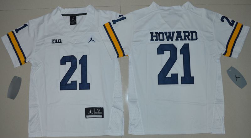 Youth Jordan Brand Michigan Wolverines 21 Desmond Howard College Football Jersey White