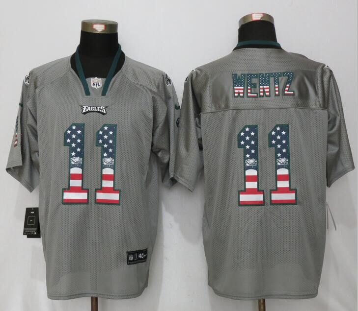 Philadelphia Eagles 11 Carson Wentz USA Flag Fashion Gray Elite Jersey