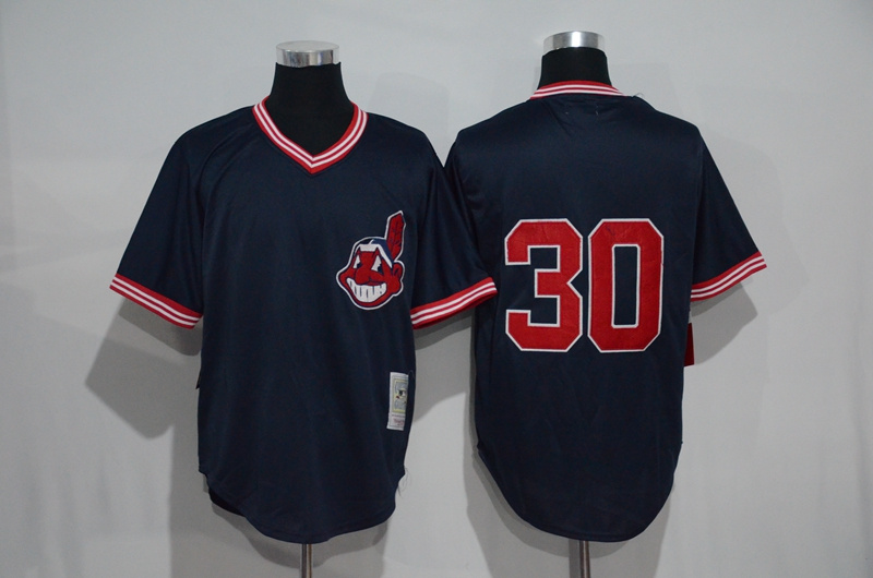 Cleveland indians 30 Joe Carter Baseball Jersey Navy Blue Retro