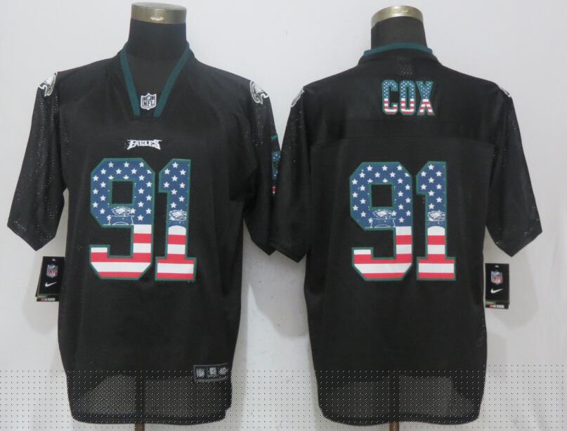 Philadelphia Eagles 91 Fletcher Cox USA Flag Fashion Black Elite Jersey