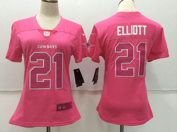 Women Dallas Cowboys 21 Ezekiel Elliott Football Jersey pink
