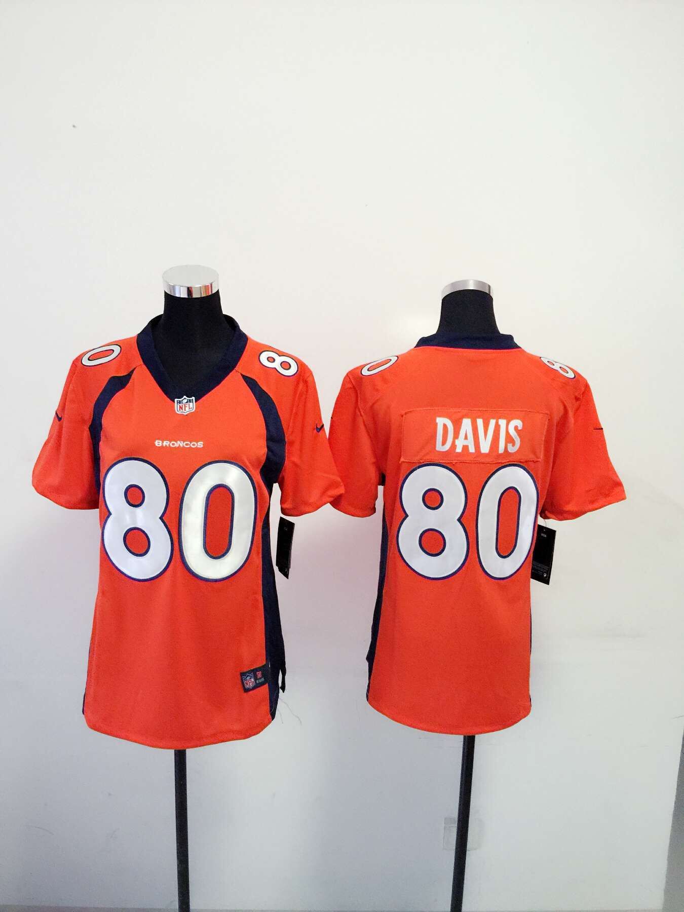 Women Denver Broncos 80 Vernon Davis Football Jersey Orange