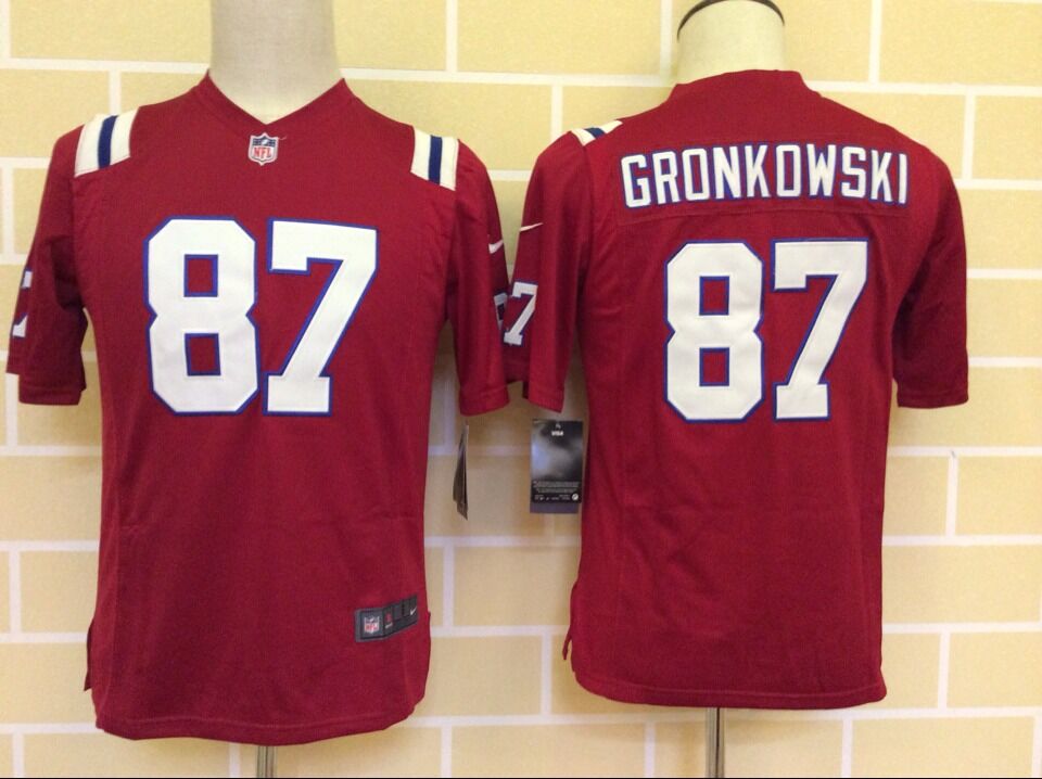 Youth New England Patriots 87 Rob Gronkowski Football Jersey Red