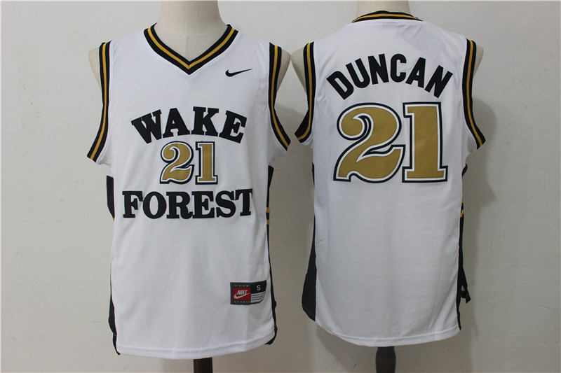 Wake Forest Demon Deacons 21 Tim Duncan College Basketball Jersey White