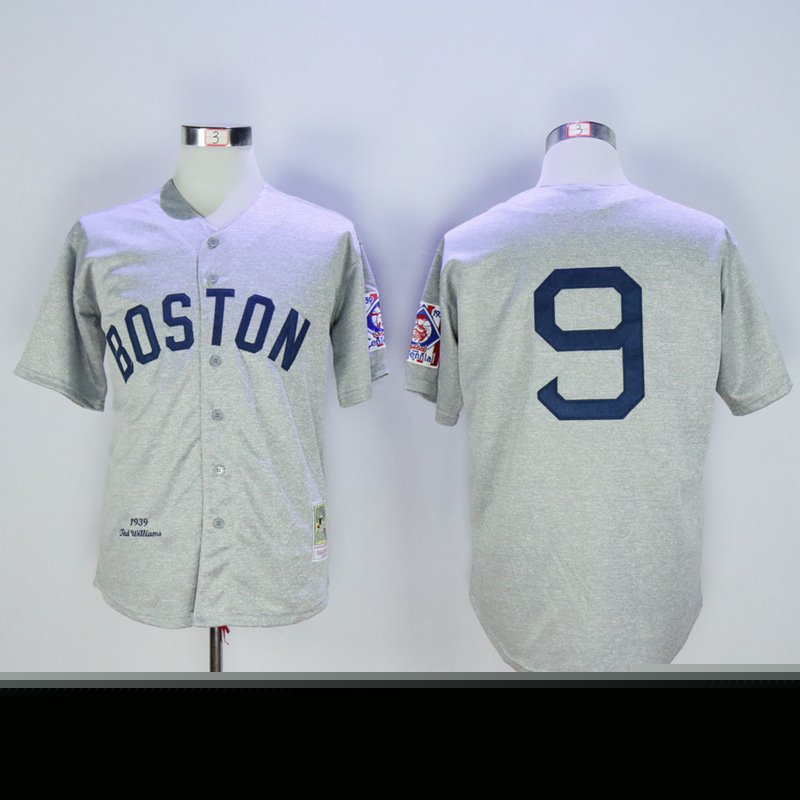 Boston Red Sox 9 Ted Williams Baseball Jersey Gray