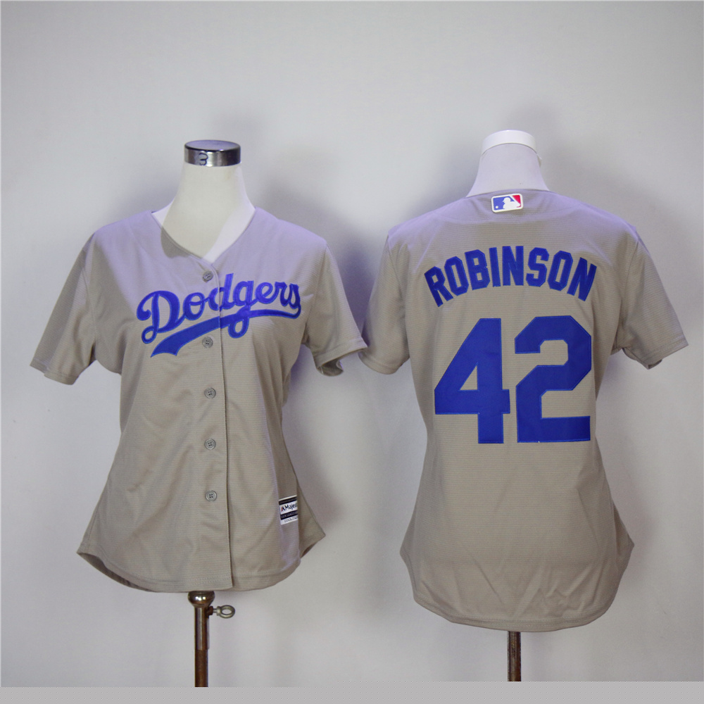 Women Los Angeles Dodgers 42 Jackie Robinson Baseball Jersey Gray