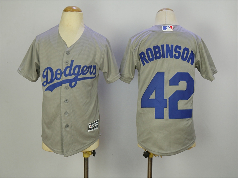 Youth Los Angeles Dodgers 42 Jackie Robinson Baseball Jersey Gray