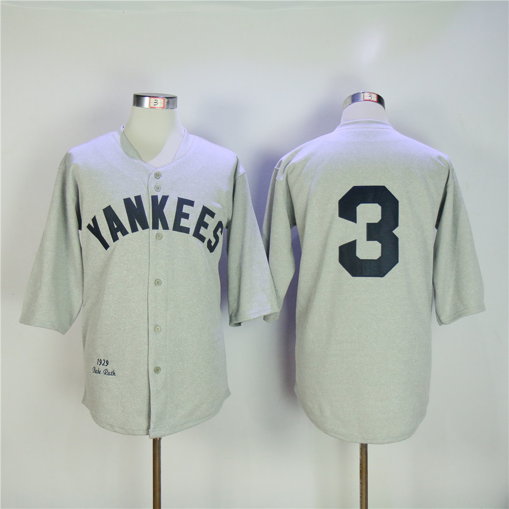New York Yankees 3 Babe Ruth Baseball Jersey Gray Retro