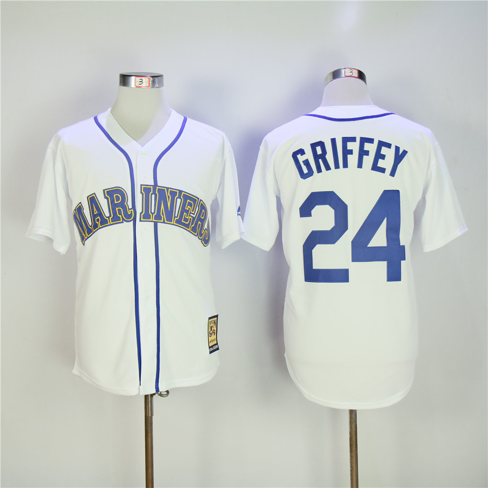 Seattle Mariners 24 Ken Griffey Baseball Jersey White Retro
