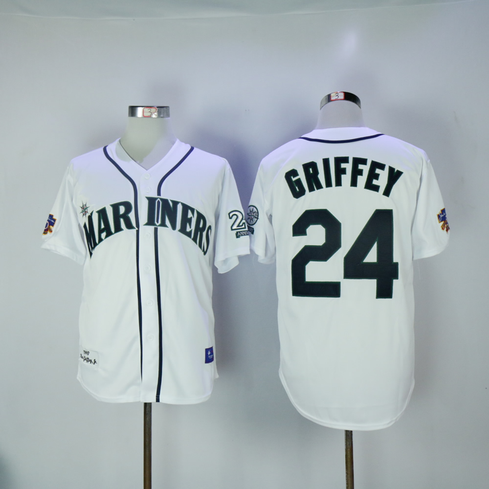 Seattle Mariners 24 Ken Griffey Baseball Jersey White Retro