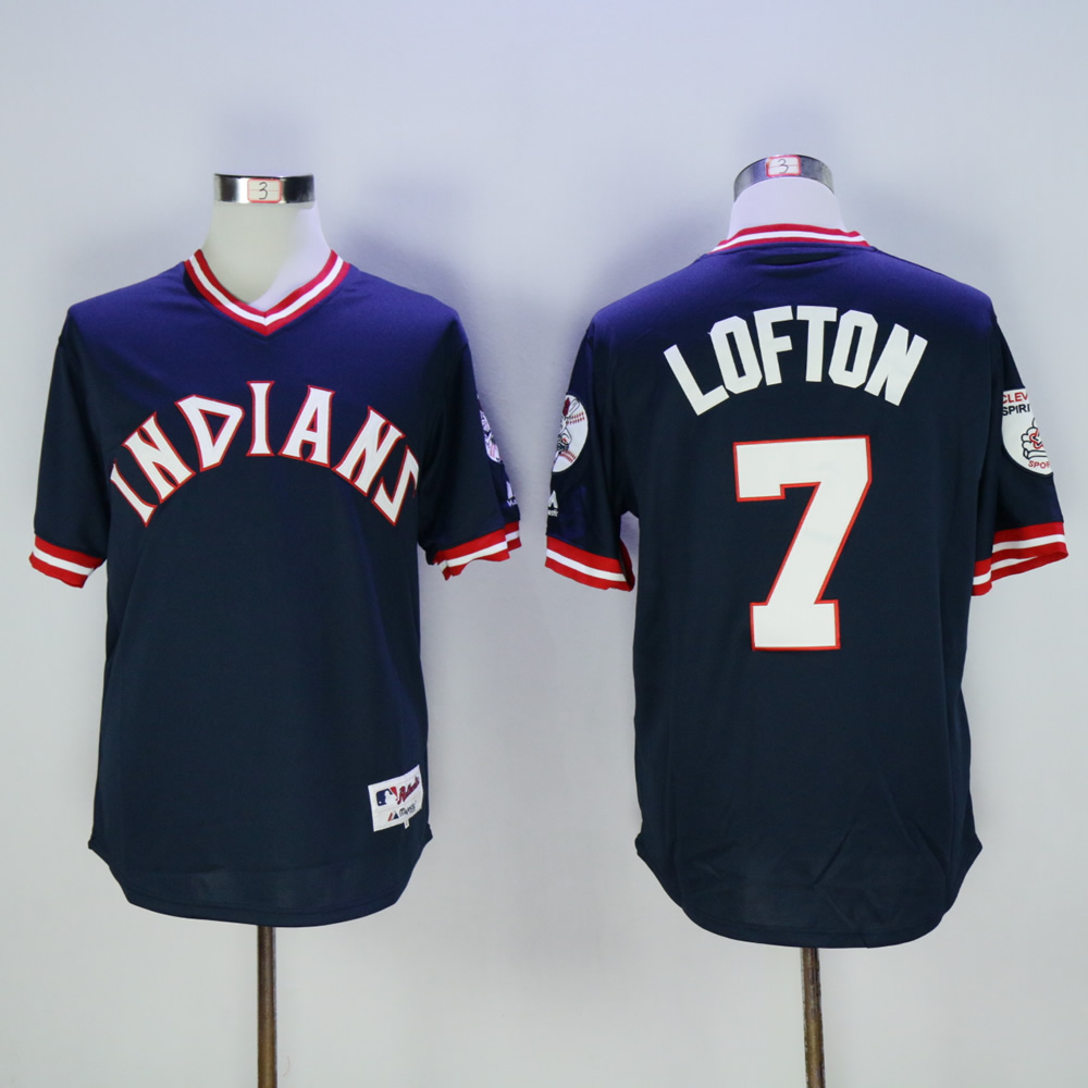 Cleveland indians 7 Kenny Lofton Baseball Jersey Navy Blue Retro