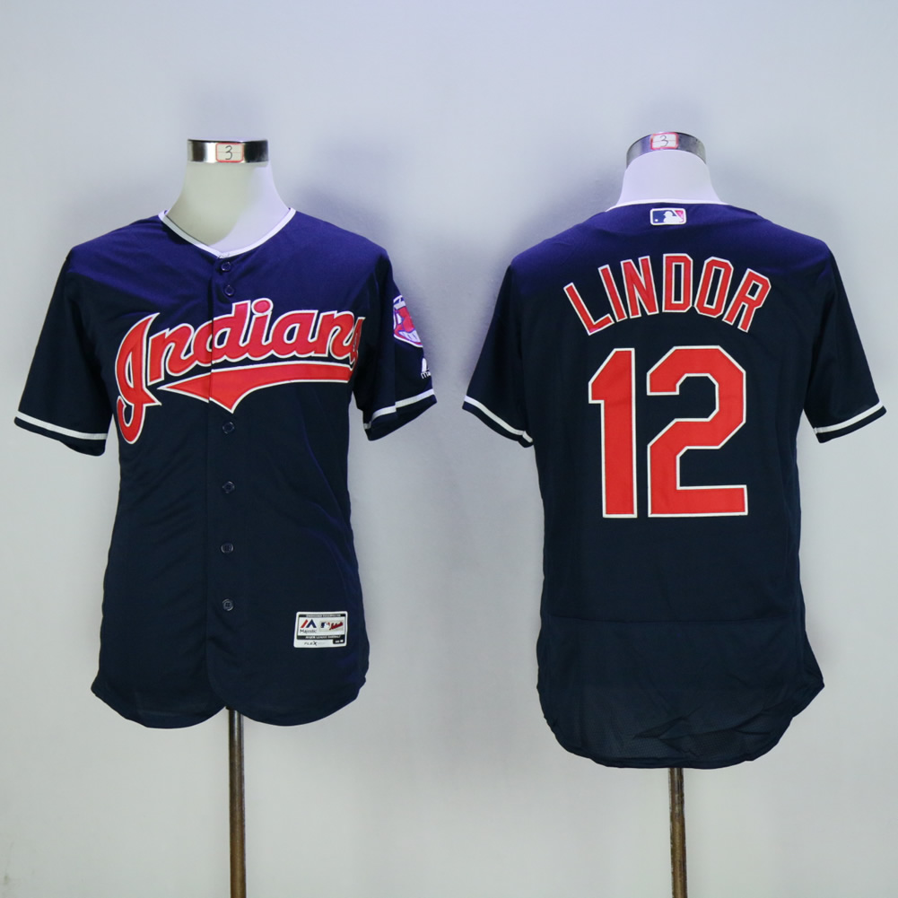 Cleveland indians 12 Francisco Lindor Flexbase Baseball Jersey Navy Blue