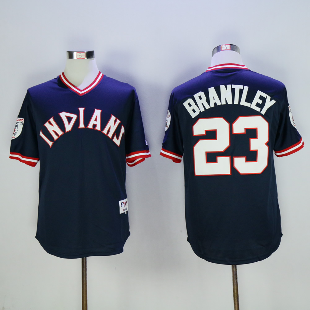 Cleveland indians 23 Michael Brantley Baseball Jersey Navy Blue Retro