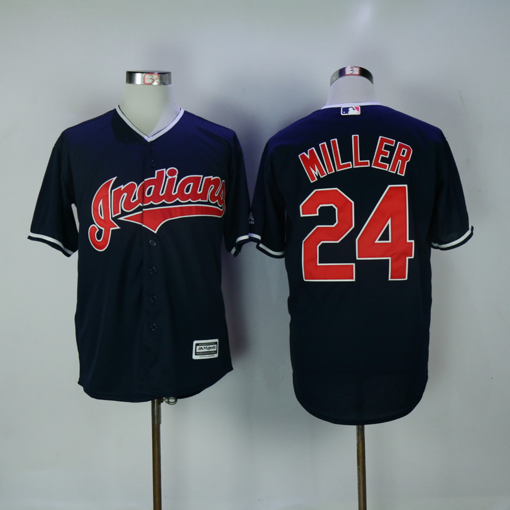 Cleveland indians 24 Andrew Miller Baseball Jersey Navy Blue Fan version