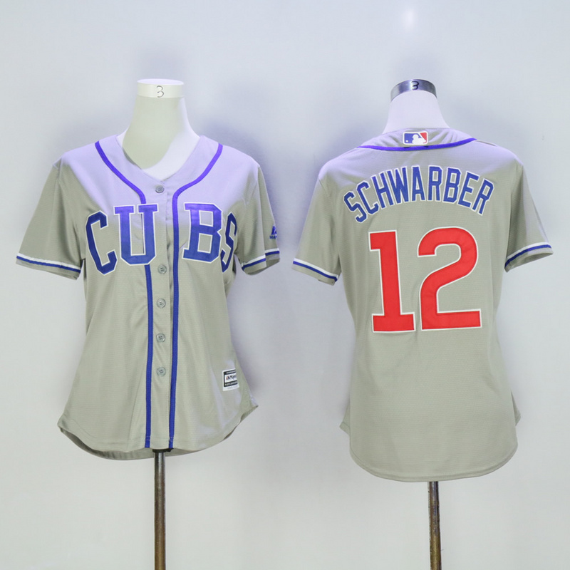 Women Chicago Cubs 12 Kyle Schwarber Baseball Jersey Gray