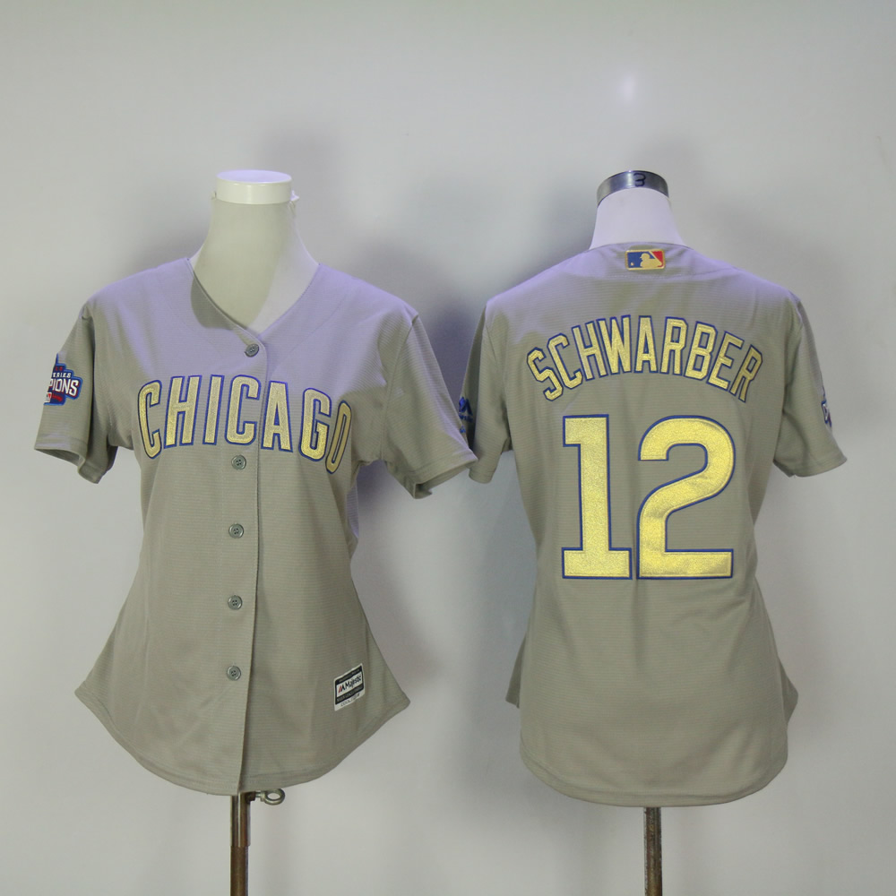 Women Chicago Cubs 12 Kyle Schwarber Baseball Jersey Gray Champion