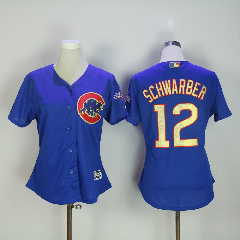 Women Chicago Cubs 12 Kyle Schwarber Baseball Jersey Blue Champion