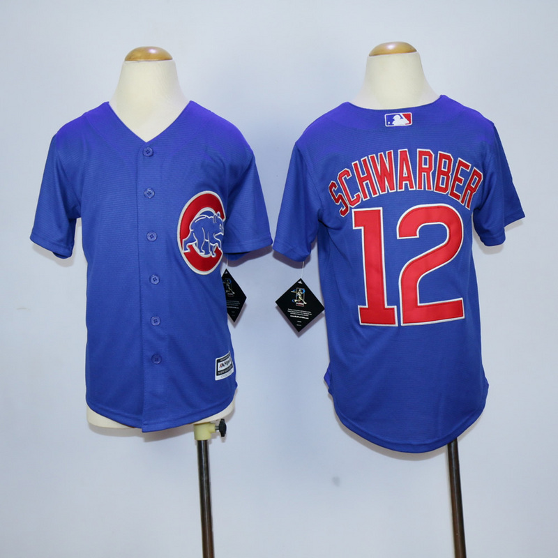 Youth Chicago Cubs 12 Kyle Schwarber Baseball Jersey Blue