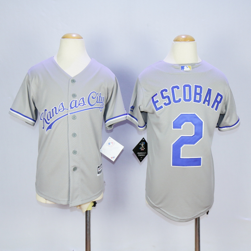 Youth Kansas City Royals 2 Alcides Escobar Baseball Jersey Gray