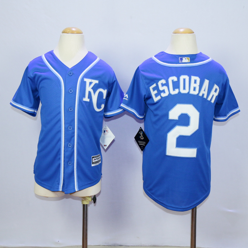 Youth Kansas City Royals 2 Alcides Escobar Baseball Jersey Blue
