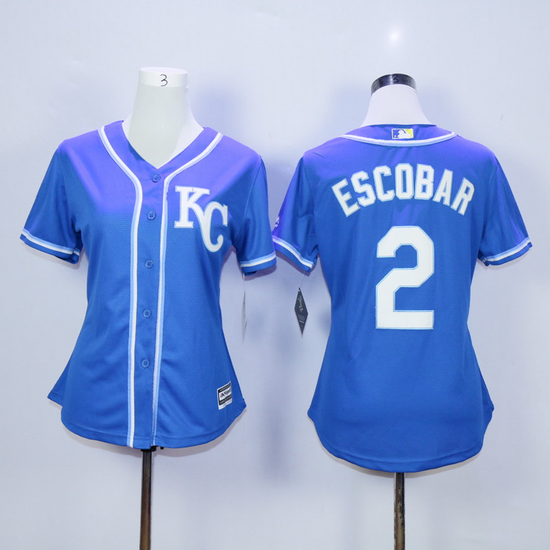 Women Kansas City Royals 2 Alcides Escobar Baseball Jersey Blue