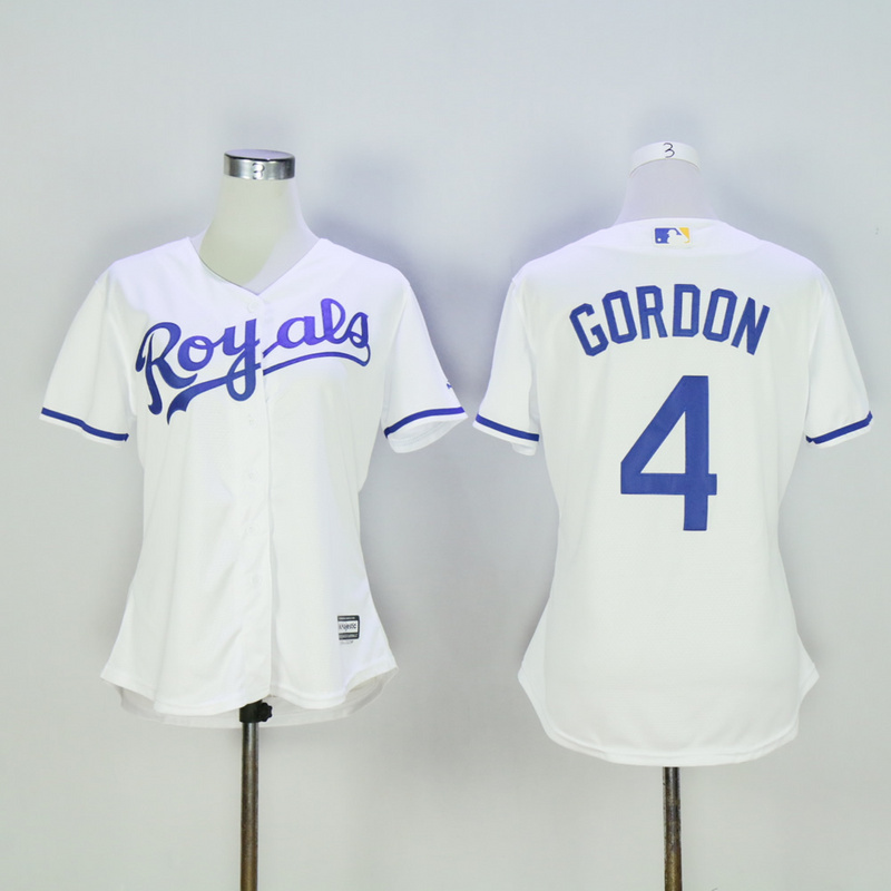 Women Kansas City Royals 4 Alex Gordon Baseball Jersey White