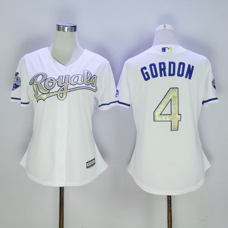Women Kansas City Royals 4 Alex Gordon Baseball Jersey White Champion