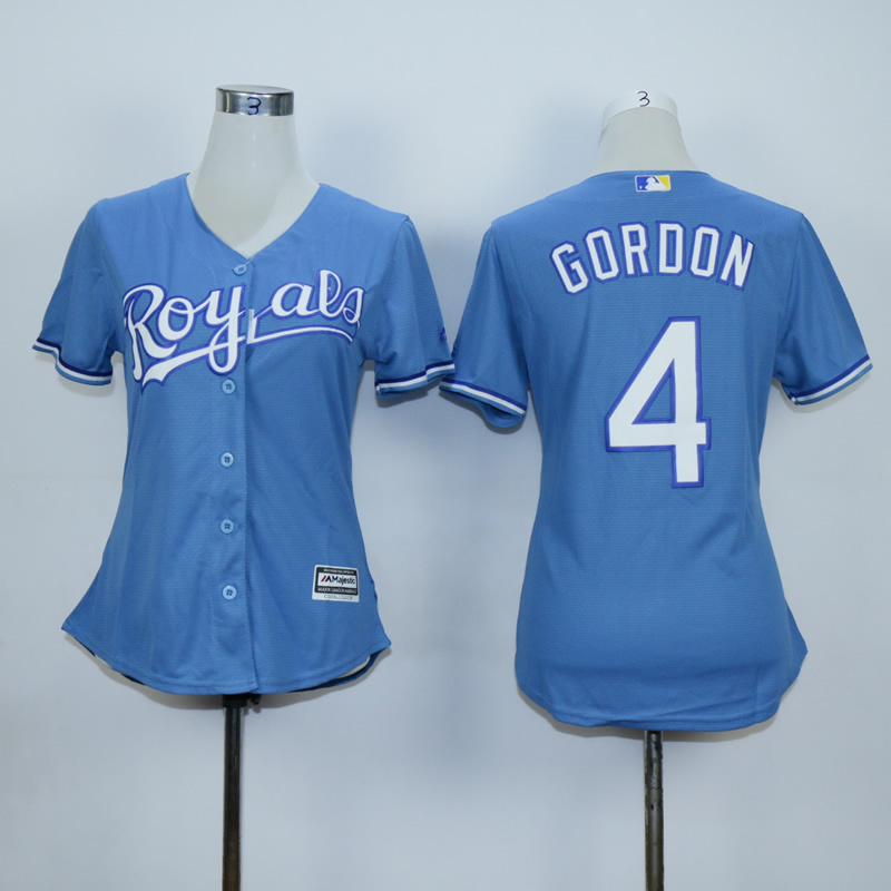 Women Kansas City Royals 4 Alex Gordon Baseball Jersey Light blue