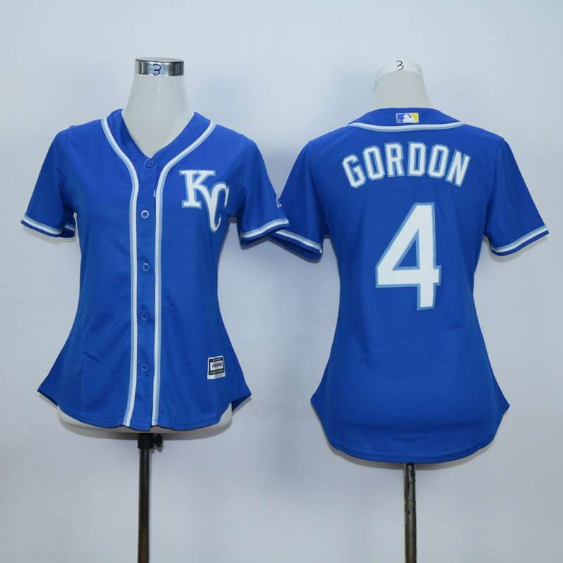 Women Kansas City Royals 4 Alex Gordon Baseball Jersey blue
