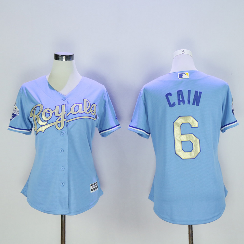 Women Kansas City Royals 6 Lorenzo Cain Baseball Jersey Light Blue Champion