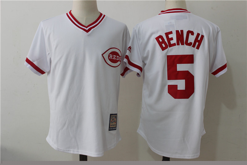 Cincinnati Reds 5 Johnny Bench Baseball Jersey White Retro