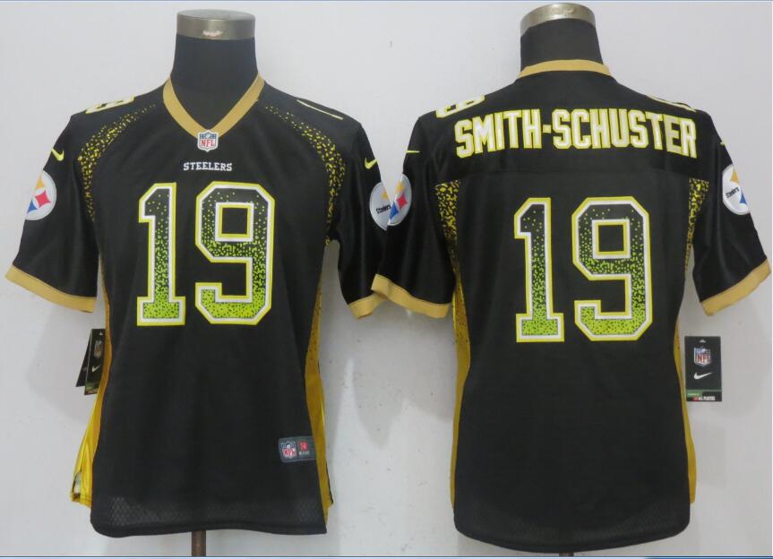 Women Pittsburgh Steelers 19 JuJu Smith-Schuster Drift Fashion Black Elite Jersey