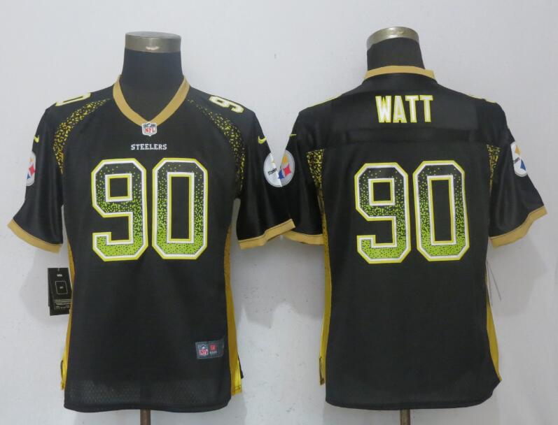 Women Pittsburgh Steelers 90 T.J. Watt Drift Fashion Black Elite Jersey